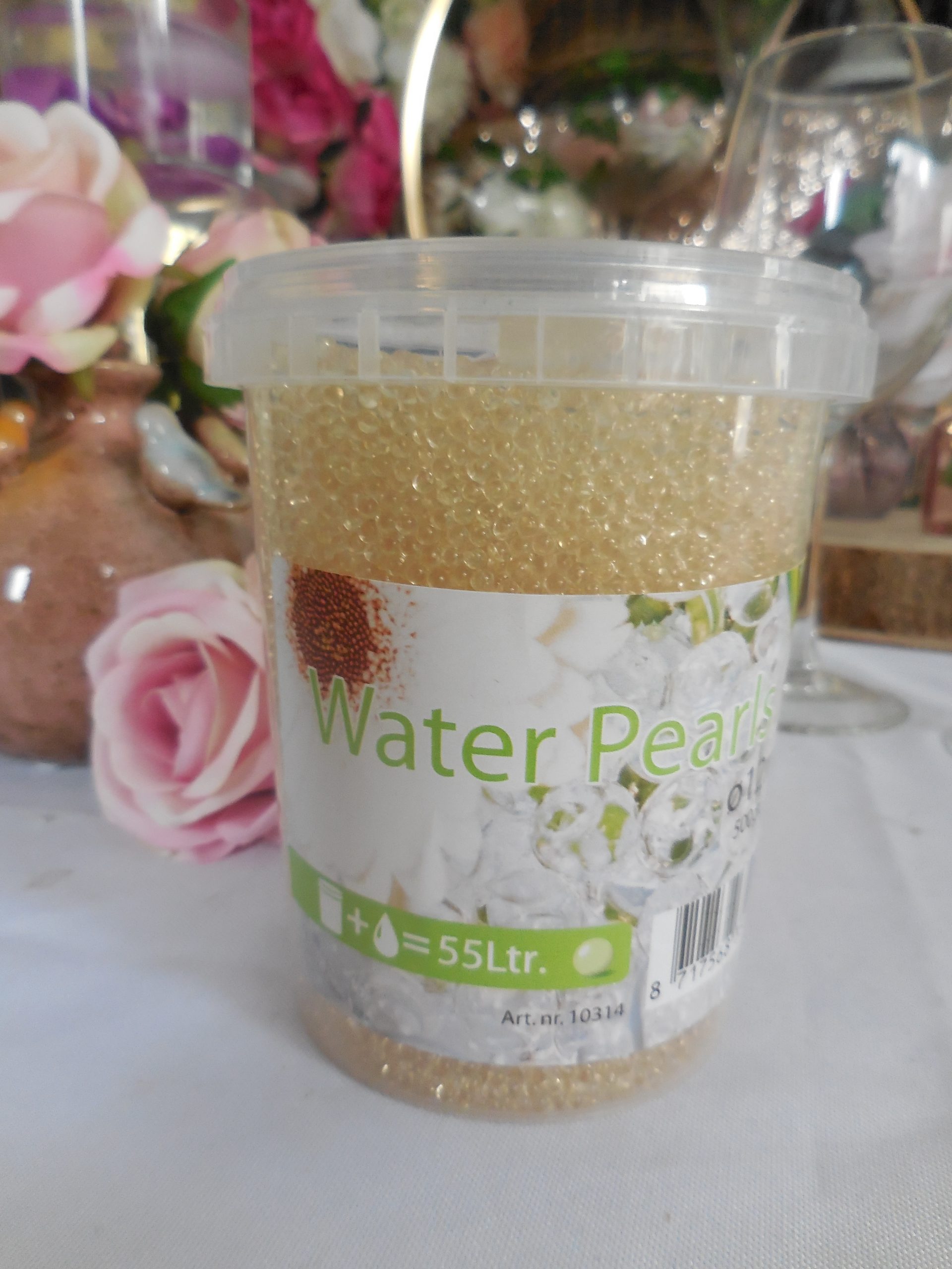 Billes d‘eau translucides incolores déshydratée ( à faire « gonfler » dans de l’eau / suivre les indications ) puis à déposer dans le fond de vases ou en support de compositions florales afin de cacher les tiges. Convient parfaitement dans les vases martini et en fond de vase cylindrique. Réalisez 55 L de billes d’eau en 2 h seulement!