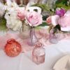 Couleurs des flacons PASTELS associés : transparent/ rose poudré/ pêche/parme