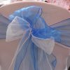 Ruban de chaises en organdi bleu roi. Une vraie couleur « royale » pour un mariage de Princesse ! Il se marie autant avec le thème du voyage que dans un esprit bord de mer .. Longueur 23 – largeur environ 28 cm .