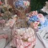 Tire lire des Mariés en métal doré- forme de robe de princesse / cage – ouverture dos par petite porte ..Légère comme une plume . Dimension : Hauteur 48 cm – diamètre bas 26 cm (fleurs non comprises)